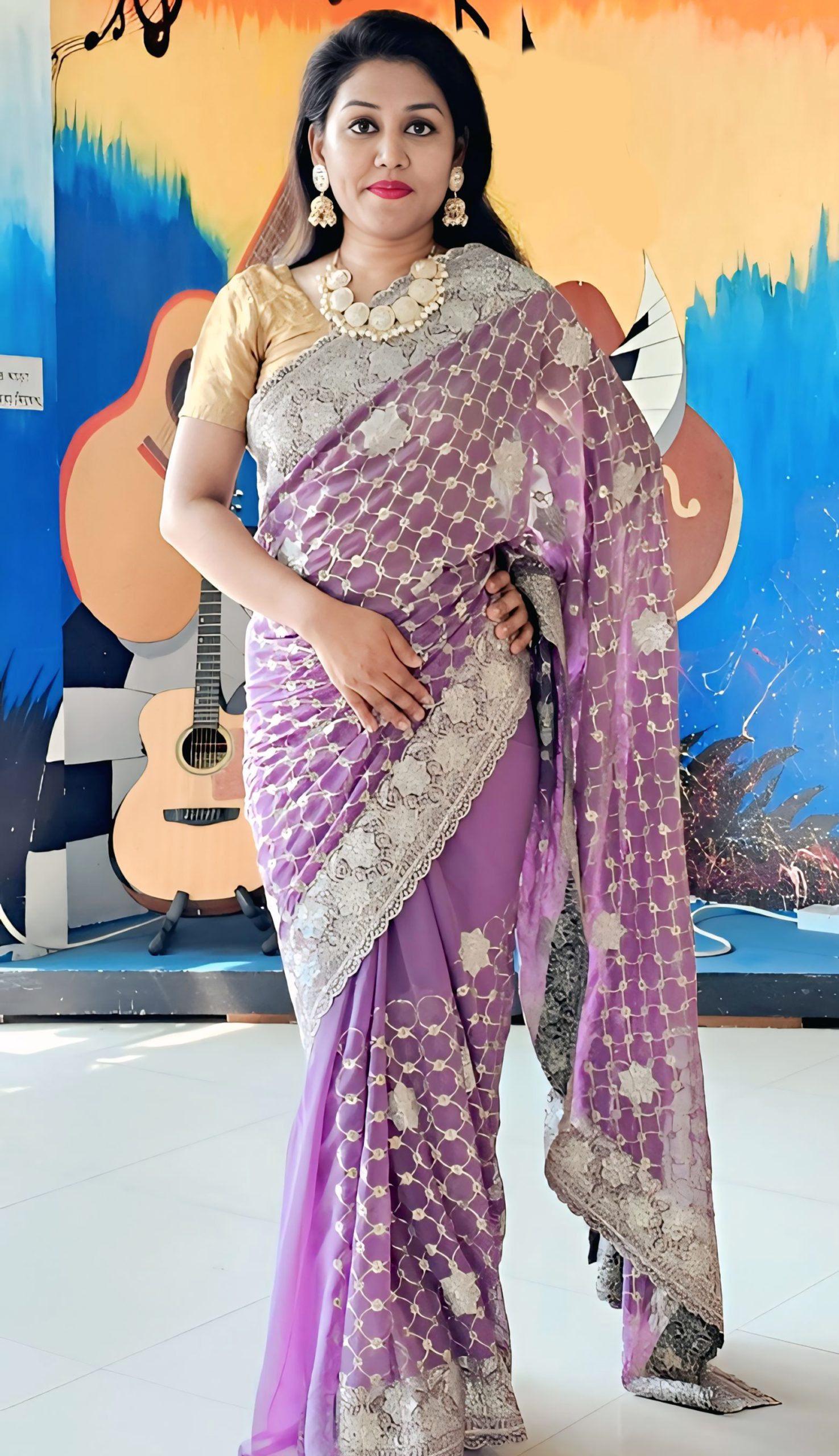 Georgette Silk Saree With Shimmer Thread Embroidery with Blouse pcs