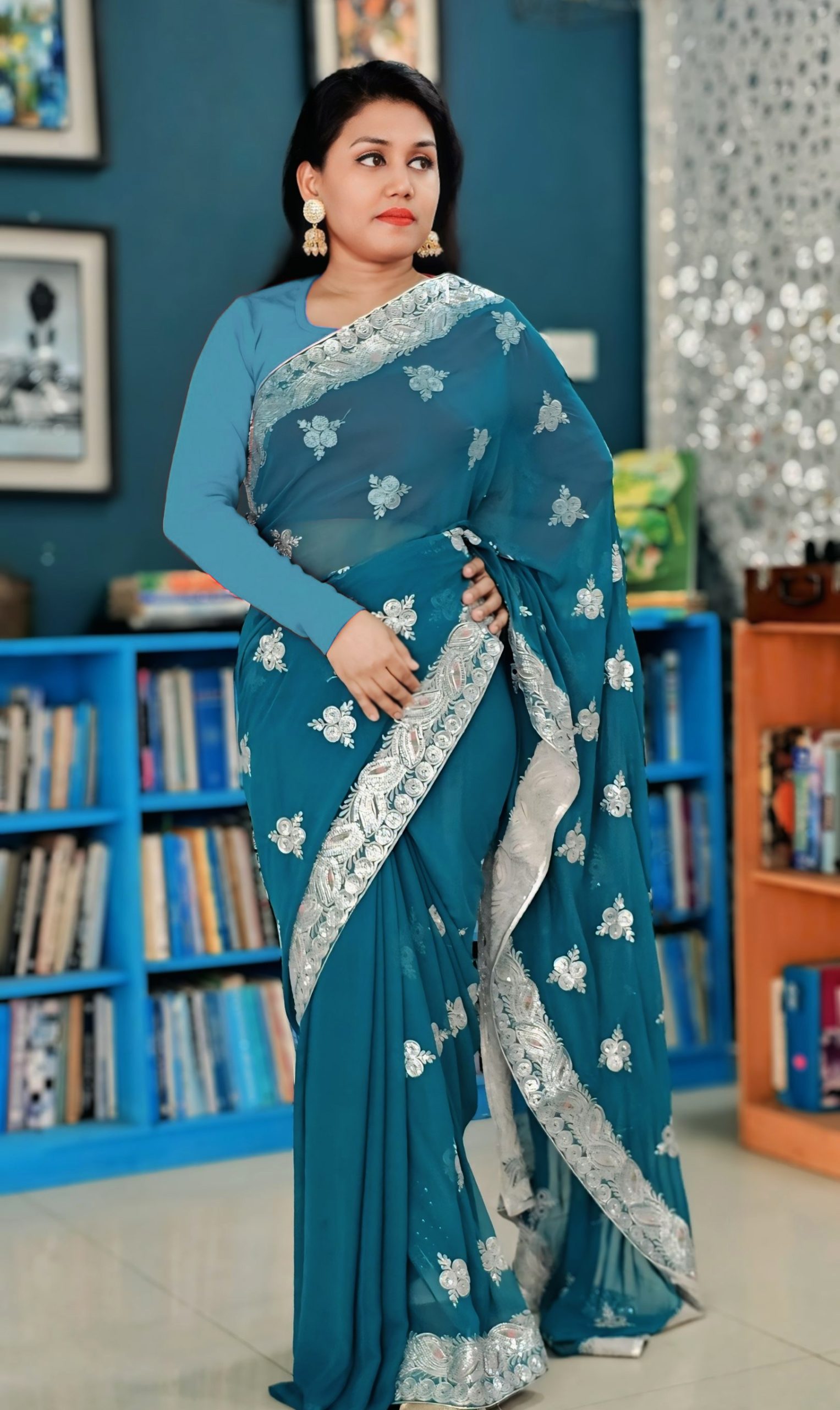 Georgette stone work saree with Blouse pcs.