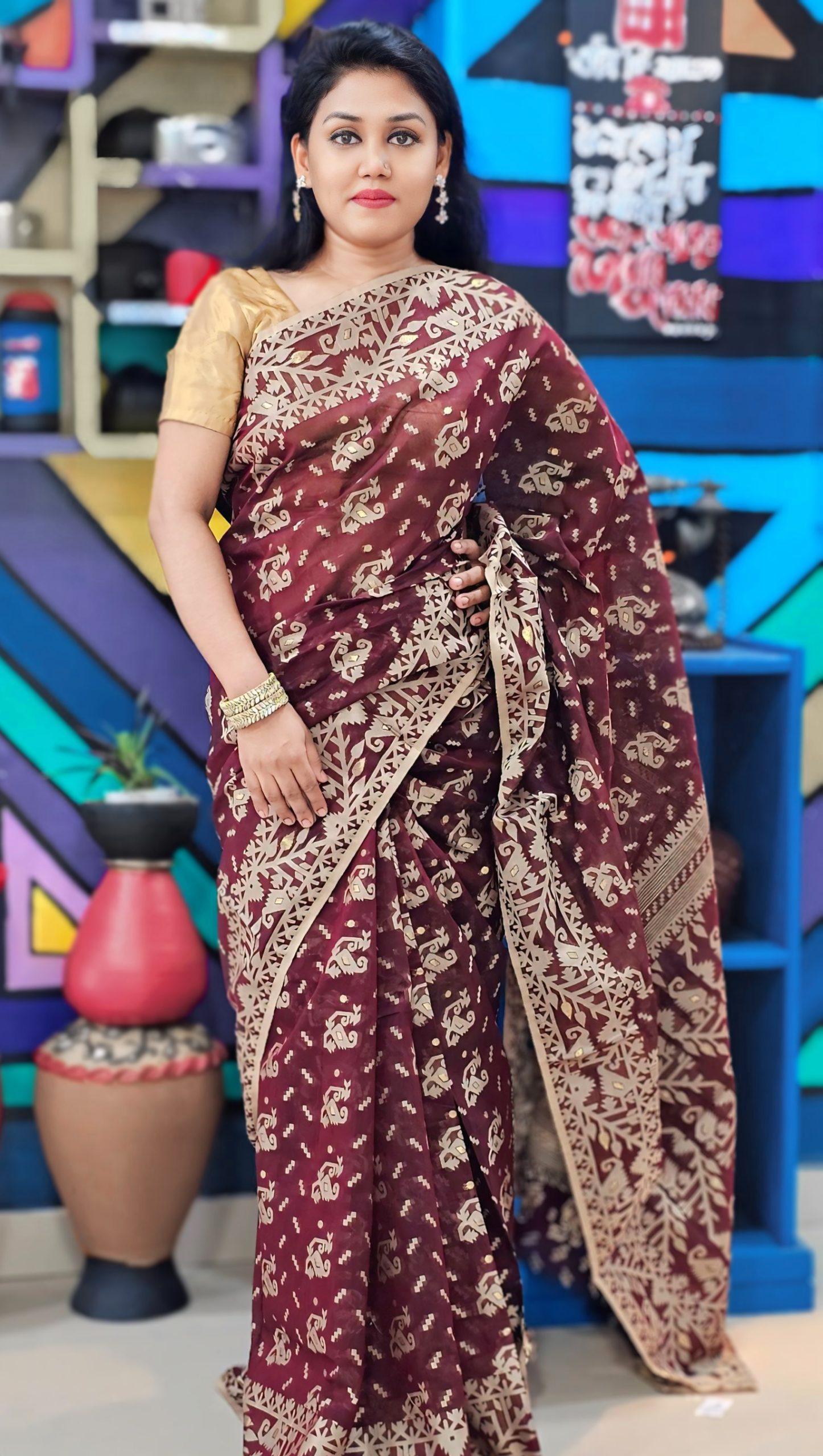 দয়াকরে অর্ডার করার সময় দেখে শুনে নিশ্চিত হয়ে অর্ডারটি কনফার্ম করুন।1Jamdani style motifs.