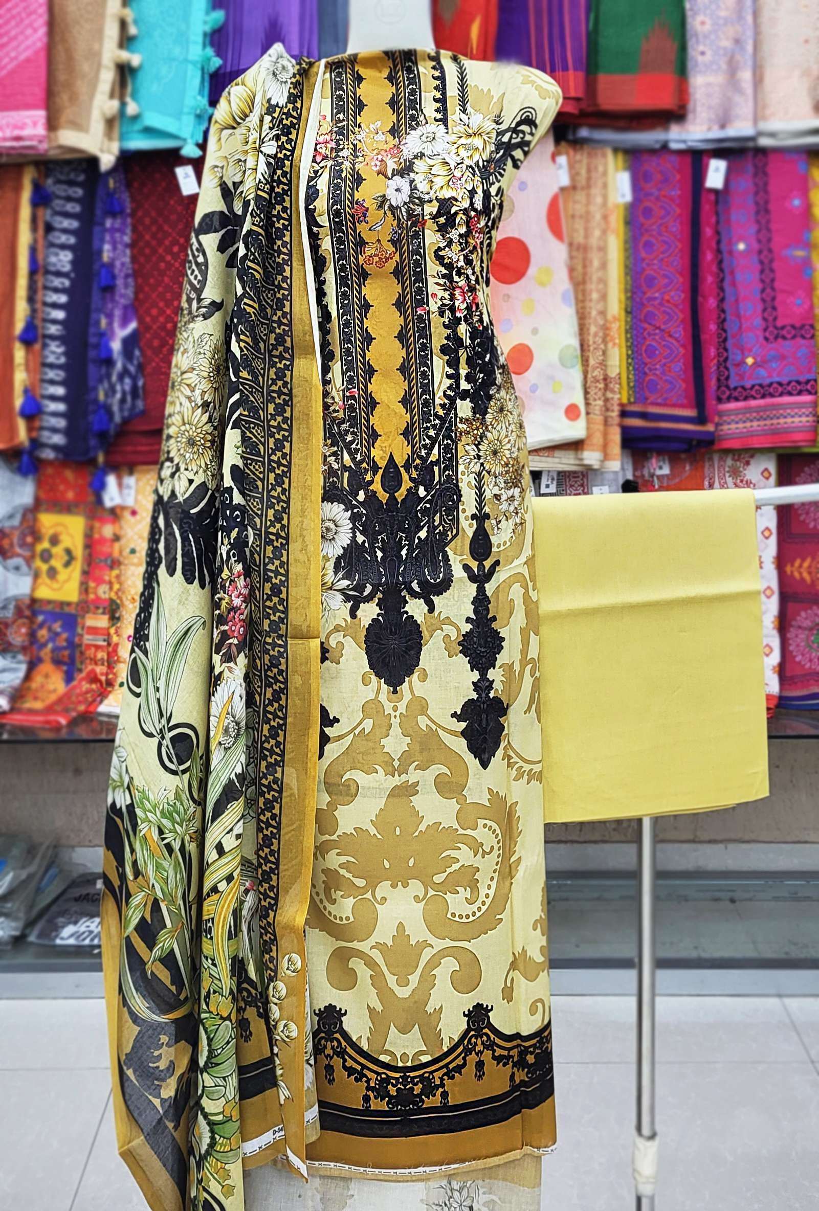 - Product Name: Unstitched Cotton Lawn 3 pcs
